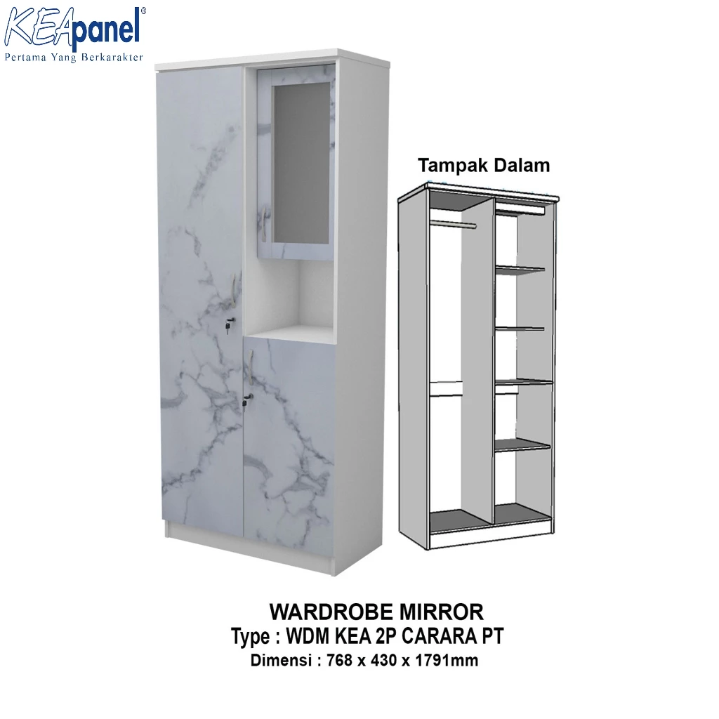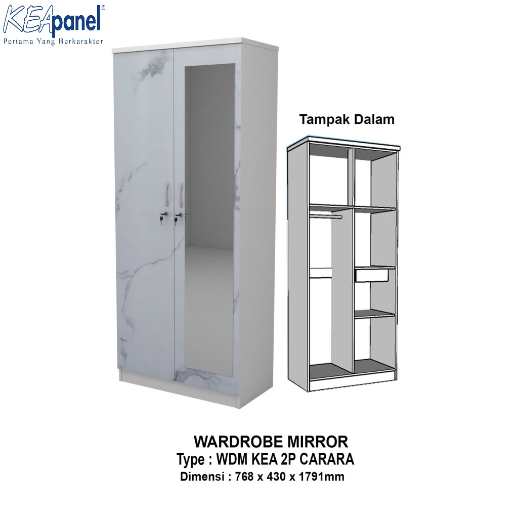 Kea Panel – Lemari Pakaian 2 Pintu Cermin / Lemari Minimalis Modern